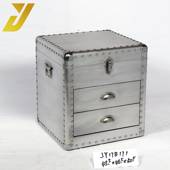 卸売工業用スタイルの寝室用家具アンティークアルミ製ベッドサイドキャビネット引き出し3個付き