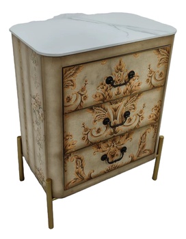 아름답게 새겨진 거실 가구 나무 골동품 3 서랍 캐비닛 대리석 탑